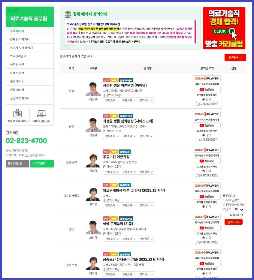 동영상강의 > 의료기술직 공무원 > 경채 패키지