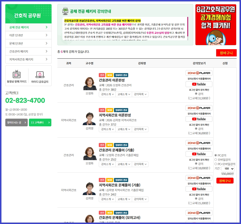 🩺 8급 간호직공무원 시험 준비, 전공은 대방열림 오정화·김희영 교수님 강의로!