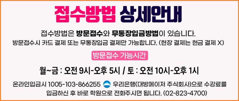 - 강의형태: 오프라인 현장강의 (대방열림고시학원 본원 진행)
