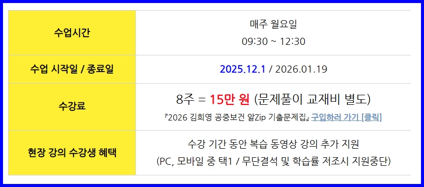 2026 보건직·의료기술직 공무원 대비|김희영 교수 공중보건 기출문제풀이 현장강의 12월 개강 안내