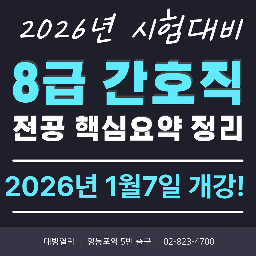 학원안내 > 2026 간호직공무원 합격! 전공 핵심요약 특강 현장강의 2026.1.7 개강