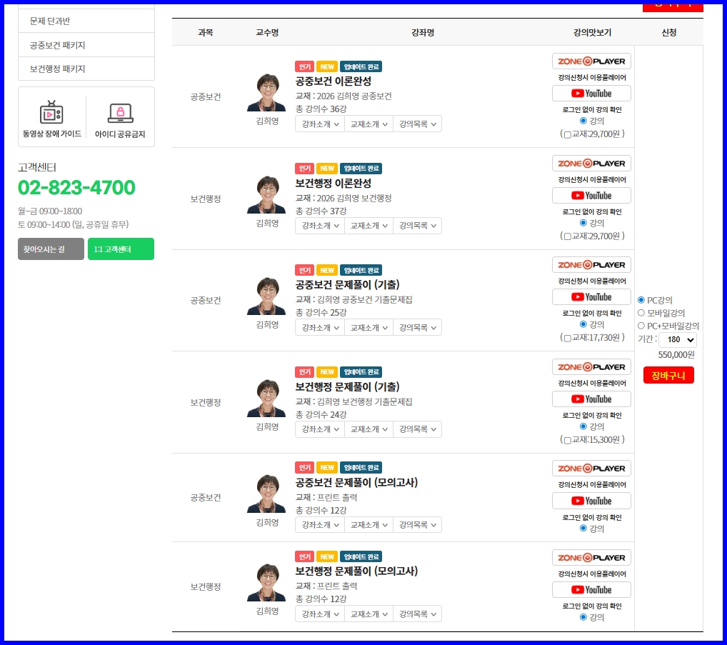 대방열림고시학원 김희영 교수님의 공중보건·보건행정 전공과목 패키지반은