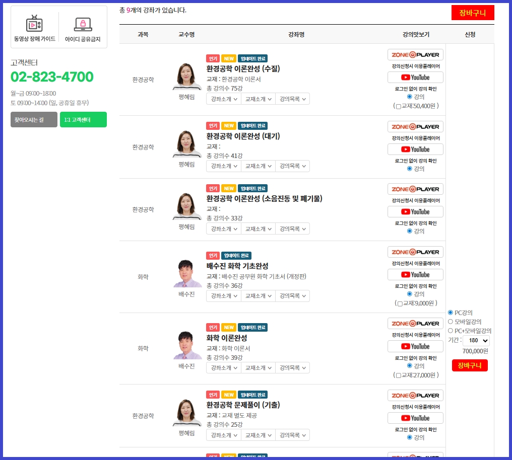 동영상강의 > 환경연구사 > 경채 패키지반