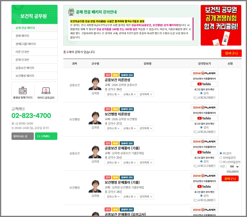 동영상강의 > 보건직 공무원 > 공채 전공 패키지