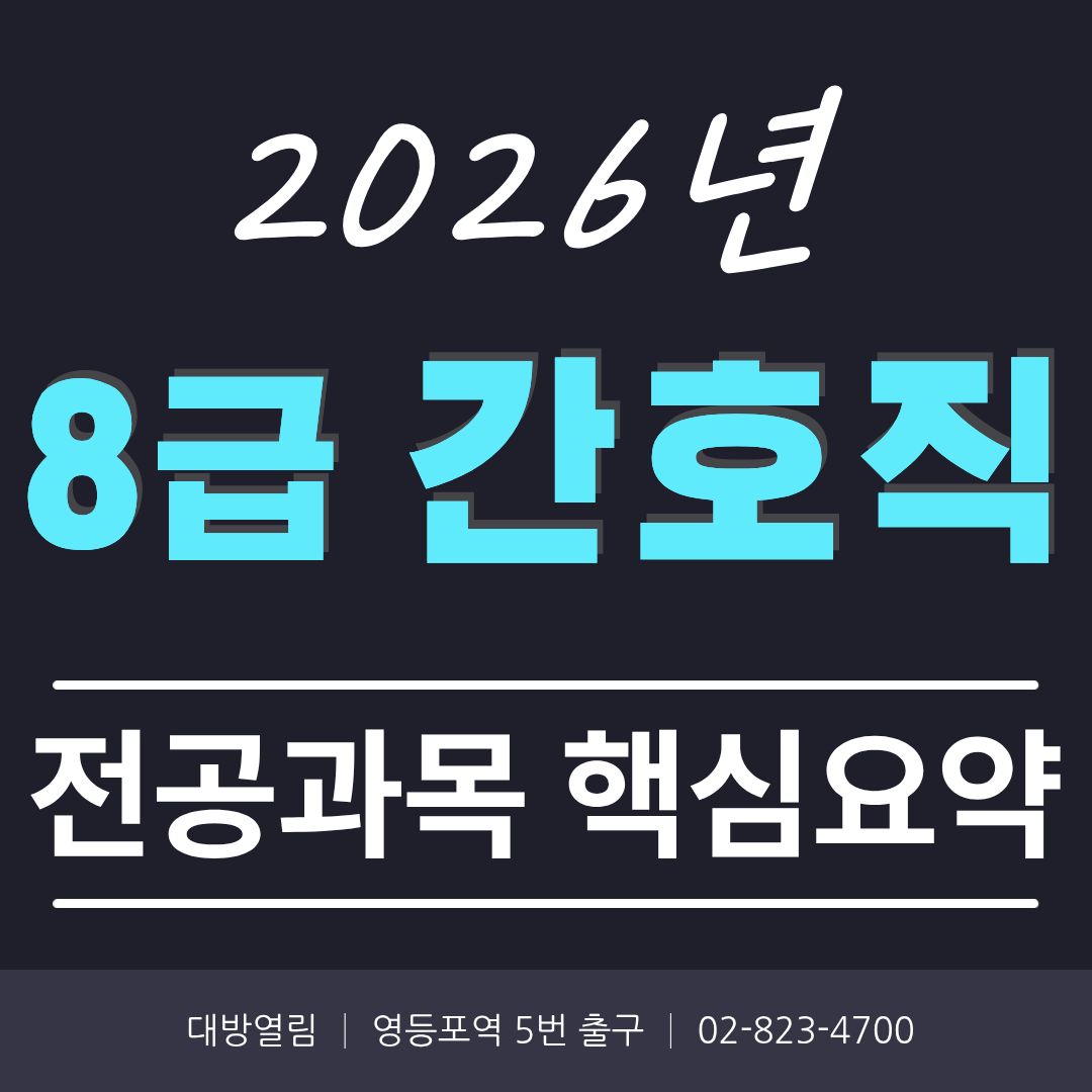 현재 대방열림고시학원에서는 2026년 8급 간호직공무원 시험 준비를 위한 전공과목 핵심요약 강의를 동영상 강의로 수강할 수 있도록 운영하고 있습니다.